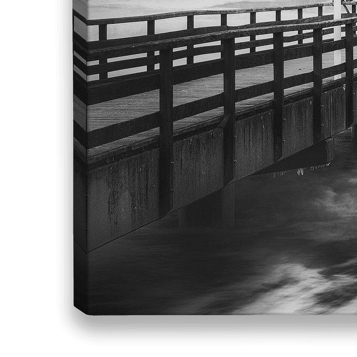 Koop de foto Storm bij de oude pier van Scharbeutz. Zwart-wit beeld. van Manfred Voss, Zwart-Wit Fotografie op canvas, aluminium dibond, (ingelijste) fotoprint, behang en ArtFrame, op maat geprint in Fine-Art kwaliteit.