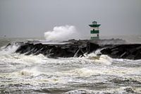 Foto genomen tijdens storm bij de ingang van de haven van Scheveningen.