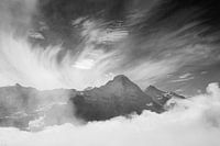 Boven de berg Eiger in het Berner Oberland van Zwitserland vormen zich woeste wolken door de wind.