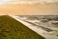 Storm trekt over de IJsselmeerdijk in de Noordoostpolder.