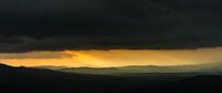 Storm over het typische coulisselandschap van het Val d'Orcia nabij Pienza en Radicofani in het zuiden van Toscane, Italieë.