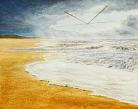 De verbeelding van de zee en het strand begon ter plekke met schetsen die later in het atelier werden uitgewerkt tot een fijne uitwerking. De bulderende golven die het okerbruine zand van het strand lijken op te slokken, zijn kenmerkend voor de wilde natuurkracht die zich hier ontvouwt.