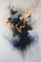 Een abstract gezicht met donkerblauw en goudDit schilderij vangt de intrigerende spanning tussen licht en duisternis, waarbij vloeiende lijnen van goud door een diepzwarte kern heen dansen. Het werk straalt een gevoel van mysterie en drama uit.
