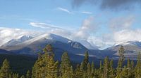 Besneeuwde bergtoppen Storronden, Rondvasshogda en Rondeslotttet in Nationaal park Rondane in de herfst.