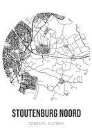 Zwart-witte landkaart, stratenplan of plattegrond van Stoutenburg Noord. Stoutenburg Noord is gelegen in de gemeente Amersfoort, provincie Utrecht. Op de stadskaart zijn alle openbare wegen in Stoutenburg Noord opgenomen. Verder is de kaart voorzien van de coördinaten van het centrum van Stoutenburg Noord.