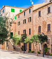 Straat in Banyalbufar dorp op Mallorca, Spanje Middellandse Zee