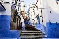 Een straatje in Chefchaouen (Marokko), zij staan bekend om haar indigoblauw geschilderde huizen.