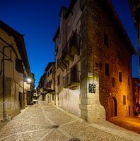 Straat in Miranda del Castanar in Spanje bij avond