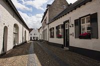 Een lieflijk straatje ingelegd met kasseien in het witte stadje Thorn in Limburg