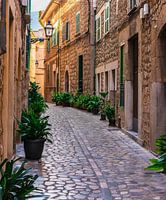 Straat in het oude beroemde dorp van Fornalutx op het eiland Mallorca, Spanje Middellandse Zee, Mallorca, Balearen, Balearen, Middellandse Zee, Spanje