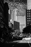 Een foto van de straten in Boston. Boston is een van de meest Europese steden in Amerika. Het is een fijn toeristenbeeld die erg mooi in zwart wit uit komt.