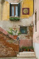 Deze scene kwam ik tegen, toen ik aan het rondstruinen was door de straatjes van Venetië. In een rustig hoekje was deze ingang naar een woning, met een trap en bloembakken.
