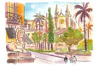 Koop de illustratie Straatbeeld op de Passeig del Born met La Seu van Markus Bleichner op canvas, aluminium dibond, (ingelijste) fotoprint, behang en ArtFrame, op maat geprint in Fine-Art kwaliteit.
