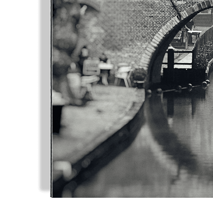 Koop de foto Straatfotografie in Utrecht. De Weesbrug over de Oudegracht in Utrecht in zwart-wit (2) van André Blom Fotografie Utrecht op canvas, aluminium dibond, (ingelijste) fotoprint, behang en ArtFrame, op maat geprint in Fine-Art kwaliteit.