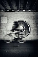 Koop de foto Straatfotografie in Utrecht. De fietser in de Leidseveertunnel. van André Blom Fotografie Utrecht op canvas, aluminium dibond, (ingelijste) fotoprint, behang en ArtFrame, op maat geprint in Fine-Art kwaliteit.