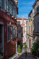 Een typisch smal Mediterraans straatje in Marseille waar je enkel met de trap naar boven kan ...