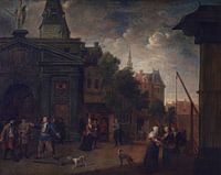 Toneelstuk dat op straat uitgevoerd wordt in de stad Antwerpen, nu Vlaams, toe Brabants.
