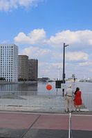 Deze foto is gemaakt op de Londenbrug op Het Eilandje, Antwerpen. Ik hou van de compositie van de foto met de rode details.