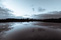Een zwart wit versie van de zonsondergang bij het Grafven op de Strabrechtse Heide.