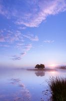 Het eilandje met een paar bomen in het Waschven tijdens zonsopkomst.