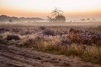 Zonsopkomst op de Strabrechtse Heide bij Heeze op een mistige herfstdag