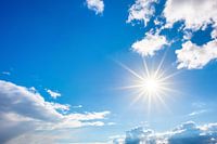 Koop de foto Strahlende Sonne am blauen Himmel van Günter Albers als print op canvas, aluminium dibond, (ingelijste) fotoprint, behang en ArtFrame. Voor jou op maat geprint in Fine-Art kwaliteit.