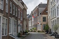 mooie statige oude gebouwen aan de Molstraat in Middelburg. Geen mensen op straat en de kleuren van de klassieke gebouwen springen er uit