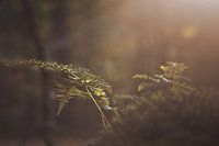 Stralend licht door de bomen op een varen in de bossen bij Arnhem (Schaarsbergen)