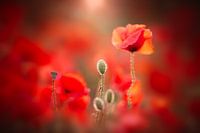 Als de avondzon de papaver oplicht, wordt het veld echt mooi:
