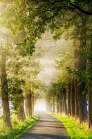 Bomenlaan in de zonnestralen. De schoonheid van de natuur ligt vaak dichterbij dan je denkt. De frisse vroege ochtend met de nog vochtige lucht geeft mooie zonnestralen in het bos. Gratis en voor niets.