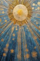 Dit werk toont een indrukwekkende zon die straalt over een blauwe hemel vol gouden sterren. De zon in het midden van het werk straalt krachtige, gouden stralen uit die harmonieus samensmelten met de achtergrond. De combinatie van het warme geel van de zon en het koele blauw van de hemel creëert een fascinerend contrast, terwijl de gouden sterren een magische sfeer toevoegen. Dit werk brengt warmte en energie in elke ruimte, perfect voor een woonkamer, slaapkamer of een inspirerende werkplek.
