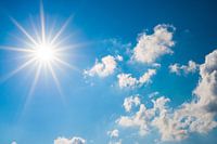 Heldere zon in een blauwe zomerlucht met mooi weer wolken