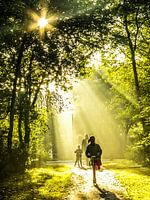 Een lenteochtend in een Lelystads park. De zon werpt lange stralen op het pad, waar juist een meisje naar school stept, gevolgd door haar moeder en broertje. Alsof het licht hen zegent...