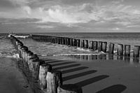 Strand Oostkapelle met stormbrekers in zwart en wit van anne droogsma