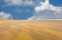 Ind en Zand zorgen voor mooie beelden op het lege strand van Scheveningen.