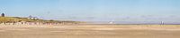 Gezicht op het kuurhuis en het strand van het Noordzee-eiland Juist in Noord-Friesland, Duitsland, Europa, in de vroege ochtend.