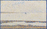 Strand bij Gravelines, Georges Seurat (1890) Dit bijna abstracte zeegezicht is weergegeven met slechts enkele kleuren, waarbij de scheiding tussen water en lucht nauwelijks wordt gemarkeerd door de strook oranje in het midden. Georges Seurat legde er de bewolkte uitstraling vast die typisch is voor de noordkust van Frankrijk, waar hij meerdere zomers doorbracht. Hoewel geschilderd op het dunne paneel dat Seurat prefereerde voor studies, is Strand bij Gravelines geen voorbereiding op een ander schilderij, maar gewoon voor zijn plezier gemaakt. Zandkorrels in de verf getuigen van het feit dat het schilderij buiten is gemaakt.