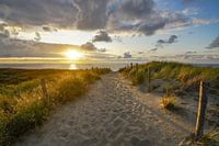 Het strand, de zee en de prachtige wolkenluchten waar de zon af en toe tussendoor schijnt. Steeds weer anders en telkens weer adembenemend. De strandopgangen tussen Katwijk, Noordwijk en Den Haag zijn prachtig en een ieder is toch weer anders. Zoekt u toch net iets anders, kijk dan bij mijn andere foto's. De kust blijft fascineren. Strand aan de kust van Katwijk in de namiddag met een fraaie zonsondergang. De zee ruist zachtjes, de wind is niet meer dan een briesje, het is zomer! Je voelt bijna het zand en de warmte van de ondergaande zon! Dit is leven! Ik heb al heel veel foto's in mijn shop van strandslagen met mooi weer. Nu heb ik eens foto's gemaakt met storm. Voel je het zand? Het strand, de zee en de prachtige wolkenluchten waar de zon af en toe tussendoor schijnt. Steeds weer anders en telkens weer adembenemend. De strandopgangen tussen Katwijk en Noordwijk en Wassenaar zijn prachtig en een ieder is toch weer anders. Zoekt u toch net iets anders, kijk dan in het album 'Strand , zee en zon aan de Hollandse kust'. De kust, strand en de zee met een prachtige zonsondergang aan uw muur geeft u echt gevoel dat je toch een beetje Hollandse kust in de buurt hebt, ook al woont u er elders :-) Zie je deze foto met prachtige wolken, de zon die haast achter de horizon zakt en de voetstappen die uitgelicht worden ook al bij jou aan je muur hangen? Er staan ook nog vele andere foto's van strand, zee en duin in mijn shop en er komen er steeds weer bij.