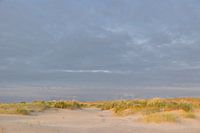 Strand en duinen van Terschelling, op een prachtige dag met mooi zonlicht wat schijnt over de duinen. Mooie dreigende wolken erachter, een prachtige foto!