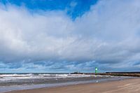 Strand en pier aan de Oostzeekust in Warnemünde.