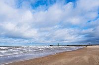 Strand en pier aan de Oostzeekust in Warnemünde.