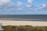 Wat een mooi uitzicht bij de vuurtoren van De Cocksdorp op Texel! Het grijze water met daarboven de pastelblauwe lucht en eronder het beige zand en groene gras...