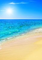 Zandstrand met blauwe lucht