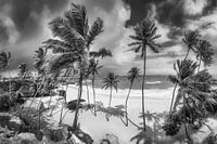 Op een droomachtig ongerept strand op het eiland Barbados. zoals in een zwart-wit prentenboek.