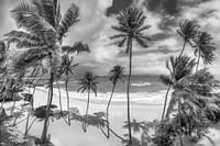Strand met palmbomen op Barbados in het Caribisch gebied. Zwart-wit beeld van Manfred Voss, Zwart-Wit Fotografie