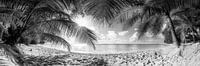 * Coconut Beach 2 Zwart-wit Caribisch Landschap. Groot gegroeide kokospalmen op een droomachtig eenzaam strand in het Caribisch gebied.