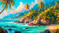 Strand met palmbomen en zee
