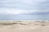 Een rustgeven foto gemaakt op terschelling. Een uitgerekt landschap. Rollende wolken boven de zee.