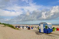 Verhuur van strandstoelen op het strand van Juist, Oost-Friese eilanden, Duitsland.