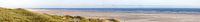 Uitzicht vanaf de duinen op het strand van het Noordzee-eiland Juist in Noord-Friesland, Duitsland, Europa, in de vroege ochtend.